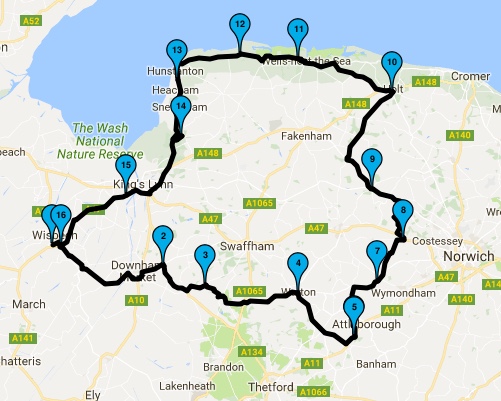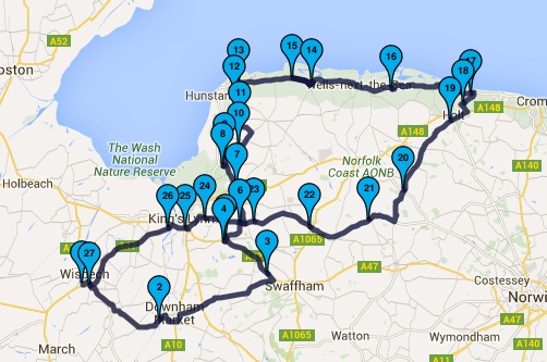 We will use the Burnham Deepdale petrol station as a stop (this is marked on the maps) and is 67 miles from the start (well within fuel range for everyone)